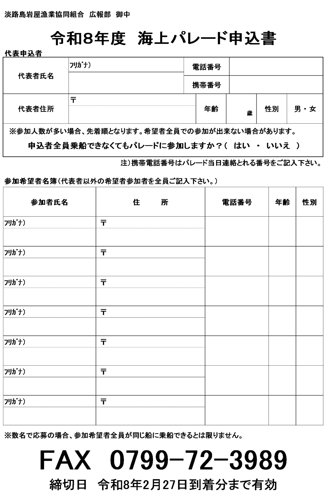 海上パレード参加申込書